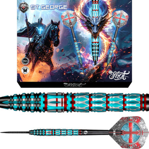 This premium 95% tungsten, missile-shaped dart set is expertly tapered, flying true whether thrown fast as a bolt or in a soaring arc. Inspired by dragon scales, the tail grip is storm forged from a fusion of advanced milling techniques. At the midsection, the knights blazing face shield glows brilliantly in red and turquoise, carved into tungsten with parametric milling paths. Up front, a tapered nose cut with alternating flat and spiked rings echoes a lance wrapped in thorns, the final strike of force and control.