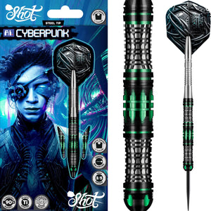 Hack next-level skills with Cyberpunk. In organic waveforms of viridian green on jet black, center-weighted Cyberpunk is modeled as an extension of your hand. Two tactical scallop grooves are embedded with Shot's data-stream matrix to fuse finger placement and lock in a sure grip. A slotted bull-style nose creates extra rotation control, followed by the central terminus, its unfaltering hold providing constant feedback.