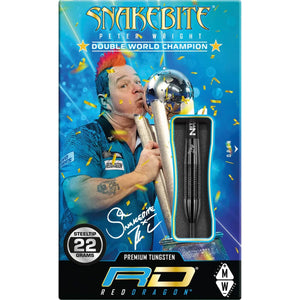 AS USED by Peter Wright in the PDC Betway Premier League. After flying to Number 6 in the World and gaining the Runner Up spot at the 2014 PDC Worlds Peter has tweaked with his darts, making his 26 gram Snakebites in Black PVD Coating for that extra subtle feel.