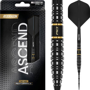 Accented with subtle gold detailing, the Ascend series radiates power and prestige - a true symbol of players ready to take their game to new heights. Paired with NitroTech shafts for unrivalled stability and flight control, these darts offer a smooth, confident release worthy of champions.