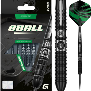 When precision matters, and every shot counts, the GOAT 8-Ball 90% Tungsten Darts bring the cool confidence of the pool hall straight to the oche. These Darts are all about control, finesse, and knowing the best route to success. With a black PVD-coated grip that echoes the spin and velocity of a cue stroke and the signature 8-Ball in pride of place at the centre of the barrel.