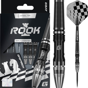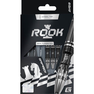 Control the board with the Goat Rook 95% tungsten Darts. Powerful, strategic, and unshakeable, forged for players who excel in their mental game, remaining consistently calm under-pressure. This barrel incorporates the Rook chess piece into its silhouette with a beautiful milled horizontal rear-grip.