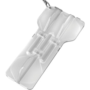 Available in two different colours (transparent white and black), this case also comes with a key ring chain so it can be attached to your darts case or just for extra portability when on the move. Complete with the Mission branding on the front of the case.