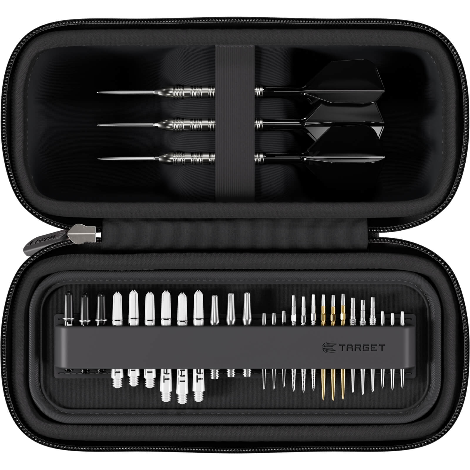 The wallet’s striking red and black pattern draws inspiration from Darth Maul’s distinctive facial markings, capturing his fierce energy and character. More than just a bold design, the BOA wallet combines practicality and performance—storing up to 6 fully assembled darts, along with dedicated compartments for shafts, Swiss Points, flights, and accessories.