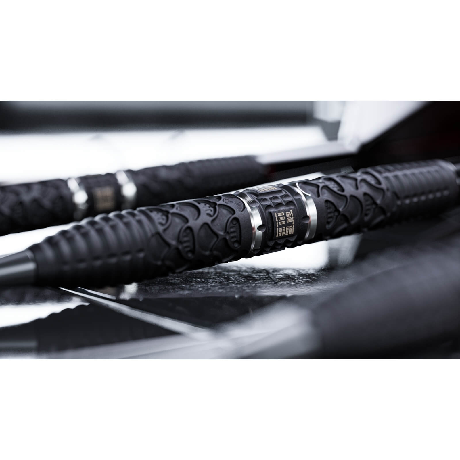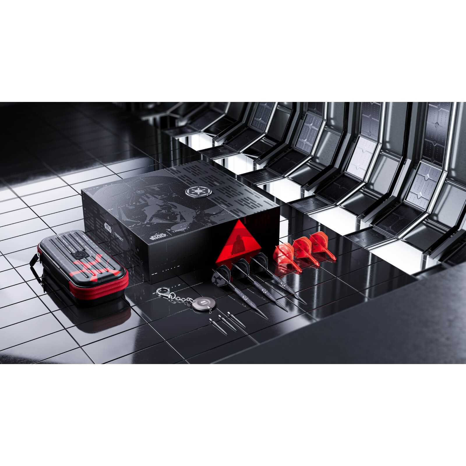 The 95% tungsten barrels are precision-milled and laser-engraved with Darth Vader detailing, combining intricate machining with a sleek black PVD performance coating. The result is an exceptional grip and flawless balance that echoes the strength and authority of the Sith, ensuring every throw delivers accuracy and command.
