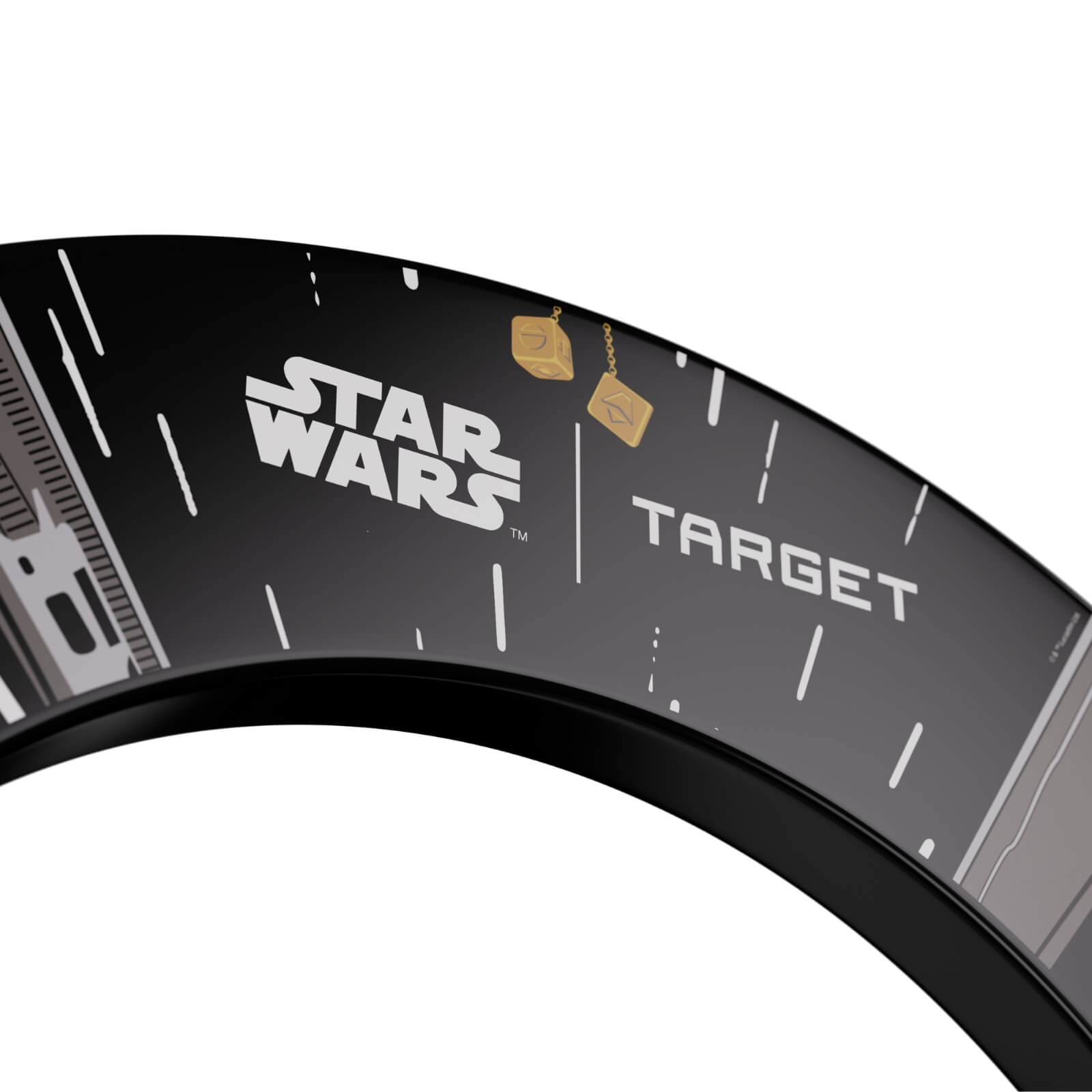 Inspired by the Falcon’s legendary cockpit, the themed surround is constructed from high-density polymer with a ribbed back profile that provides active reflex protection for walls and darts. Designed for a perfect fit around the TOR dartboard, it requires no wall fixings — offering easy installation and a striking finish worthy of any Star Wars fan’s setup.